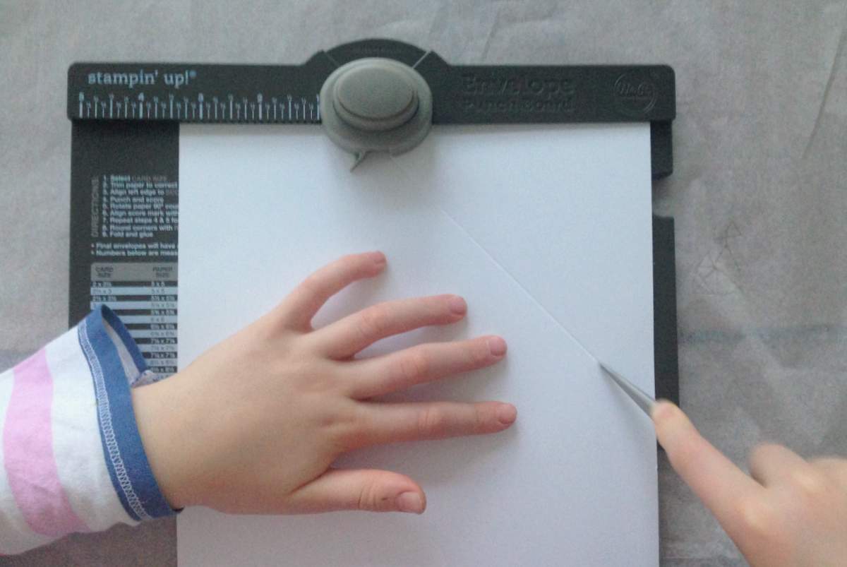 Ich habe ein neues Lieblingsbasteluntensil: das Envelope Punch Board. Kennt ihr das? Das ist ein Gerät mit dem man Briefumschläge selber machen kann. Man braucht nur einen Bogen Papier und schon kann es losgehen. Gesehen habe ich solche Geräte schon vor langer Zeit auf amerikanischen blogs und versucht hier eines zu bekommen. Gab es aber nicht. Als ich so ein Punch Board dann zufällig bei Instagram wieder entdeckt habe, musste ich undbedingt eines ausprobieren. Perfekt dafür angeboten hat sich der Kindergeburtstag von Fräulein M. Wir haben die Geburtstagseinladungen wie immer selbst gemacht und die Umschläge dafür mit dem Envelope Punch Board gestanzt. Das ging wirklich einfach und hat dem Fräulein grossen Spaß gemacht. Ich kam mit dem Fotografieren gar nicht nach, so schnell war sie. Daher gibt es auch einiges an Bewegungsunschärfe auf den Fotos…