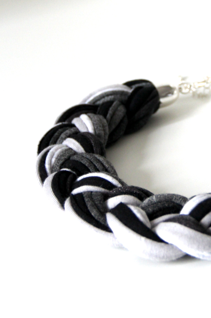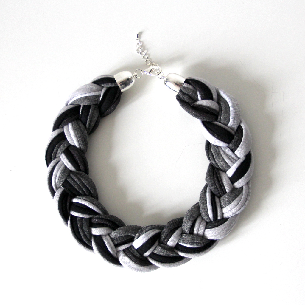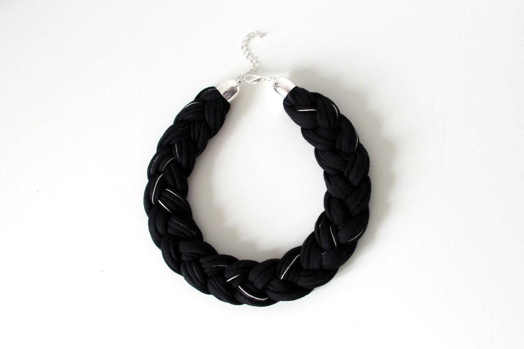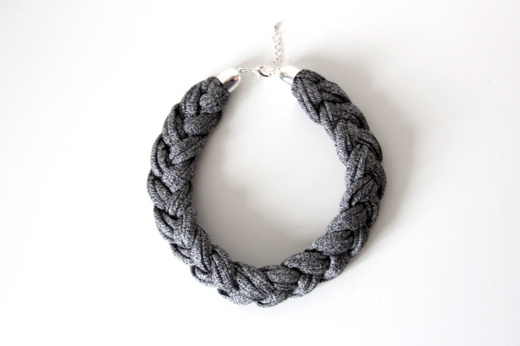 Bei den Ketten handelt es sich um ganz dick geflochtene, textile Statementketten mit silberfarbenem Karabinerverschluß. Bisher stehen die folgenden Farben zur Auswahl.