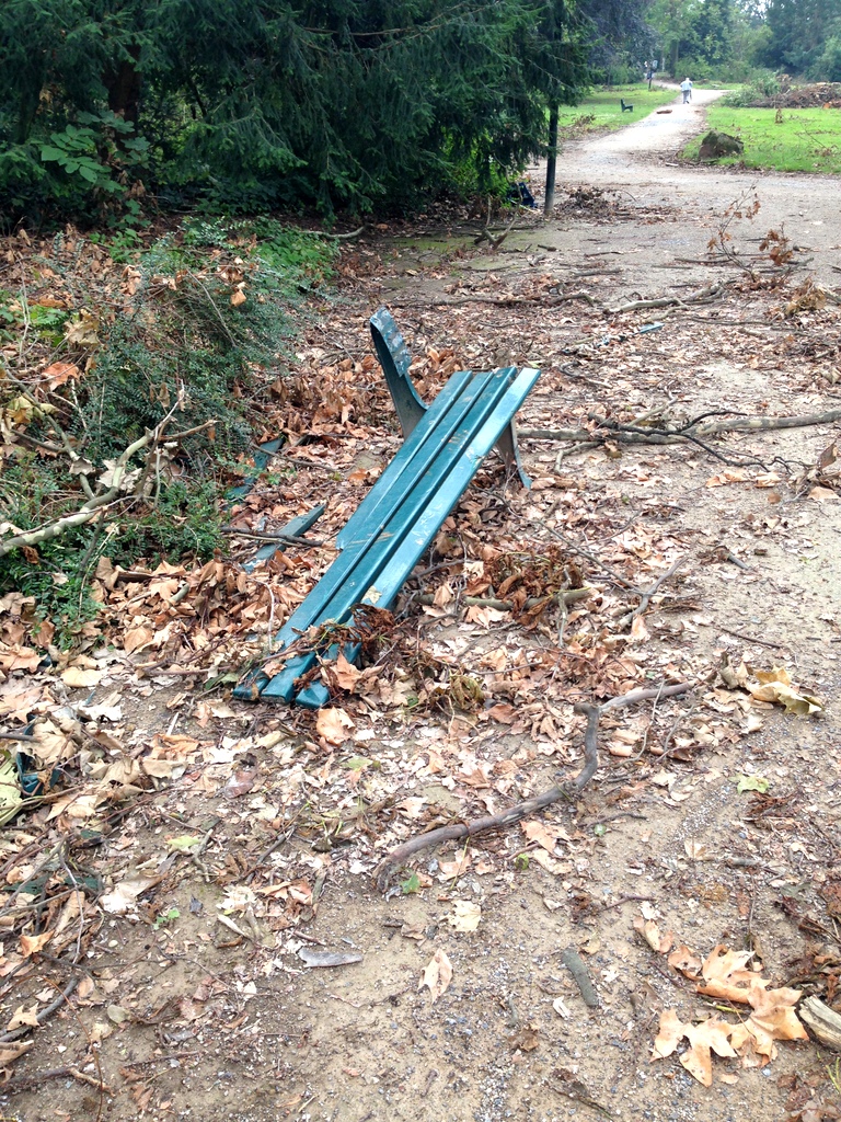 Trotz der Warnung vor Lebensgefahr werden diese Absperrungen nämlich immer wieder zur Seite geschoben, umrundet und ignoriert. Die Parks werden von Fußgängern, Joggern, Familien mit Kinderwagen und Fahrradfahrern durchquert. Für Außenstehende ist das vielleicht schwer zu verstehen, aber irgendwie scheint das eine Form von Trotz zu sein. Wir erlauben dem Orkan einfach nicht uns unsere Parks zu nehmen. Gestern habe ich noch mal darüber nachgedacht und festgestellt, dass ich auch selber irgendwie abgestumpft bin gegenüber dieser Warnung. Wir laufen über Bürgersteige, über denen immer noch abgeknickte Äste hängen, wir fahren über Straßen und manchmal hängen in jedem zweiten Baum am Fahrbahnrand abgeknickte Äste, wir parken unter Bäumen und viele schauen mittlerweile nicht mal mehr nach oben um zu sehen, ob vielleicht ein Ast aufs Auto stürzen könnte.