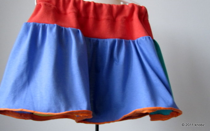 Bei P steht in nächster Zeit ein Schulfest an – mit Aufführung von P’s Klasse. Damit alle die gleichen Kostüme bekommen haben wir (4 Mütter) an einem Tag 11 Röcke und 17 Hosen genäht. Das war eine lustige Aktion im Schrebergarten mit Nähen im Akkord – gut dass ich meine mittlerweile heissgeliebte Overlockmaschine dabei hatte.